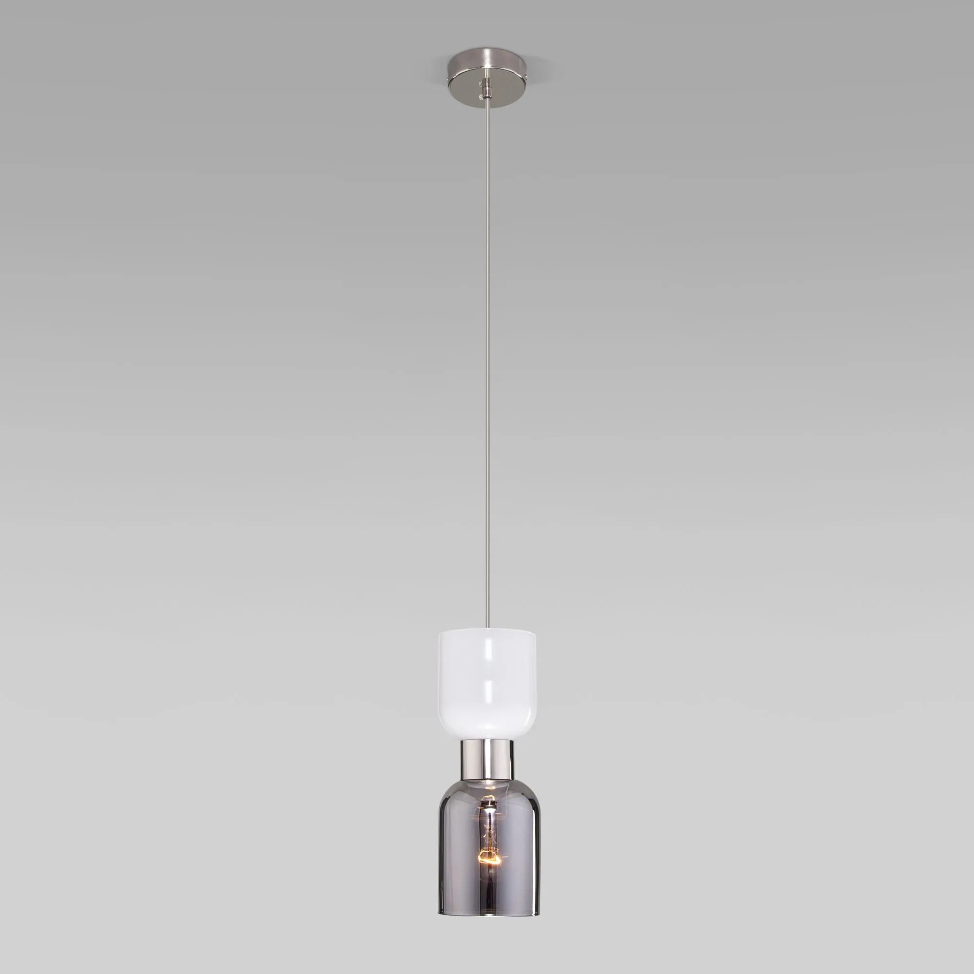 Подвесной светильник со стеклянным плафоном 50118/1 никель, предназначен для создания дополнительного освещения и акцентной подсветки в современных интерьерах. Светильник со сменной лампой E27 создаст качественное освещение на площади 4 кв.м. и подсветит рабочие зоны на кухне, в гостиной, в офисе и других местах.