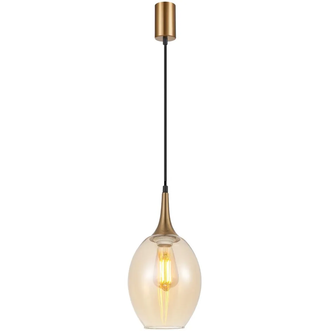 Металлический каркас в цвете латунь, выдувной плафон янтарного цвета, цоколь Е27,сменная лампа, регулируемая высота.
