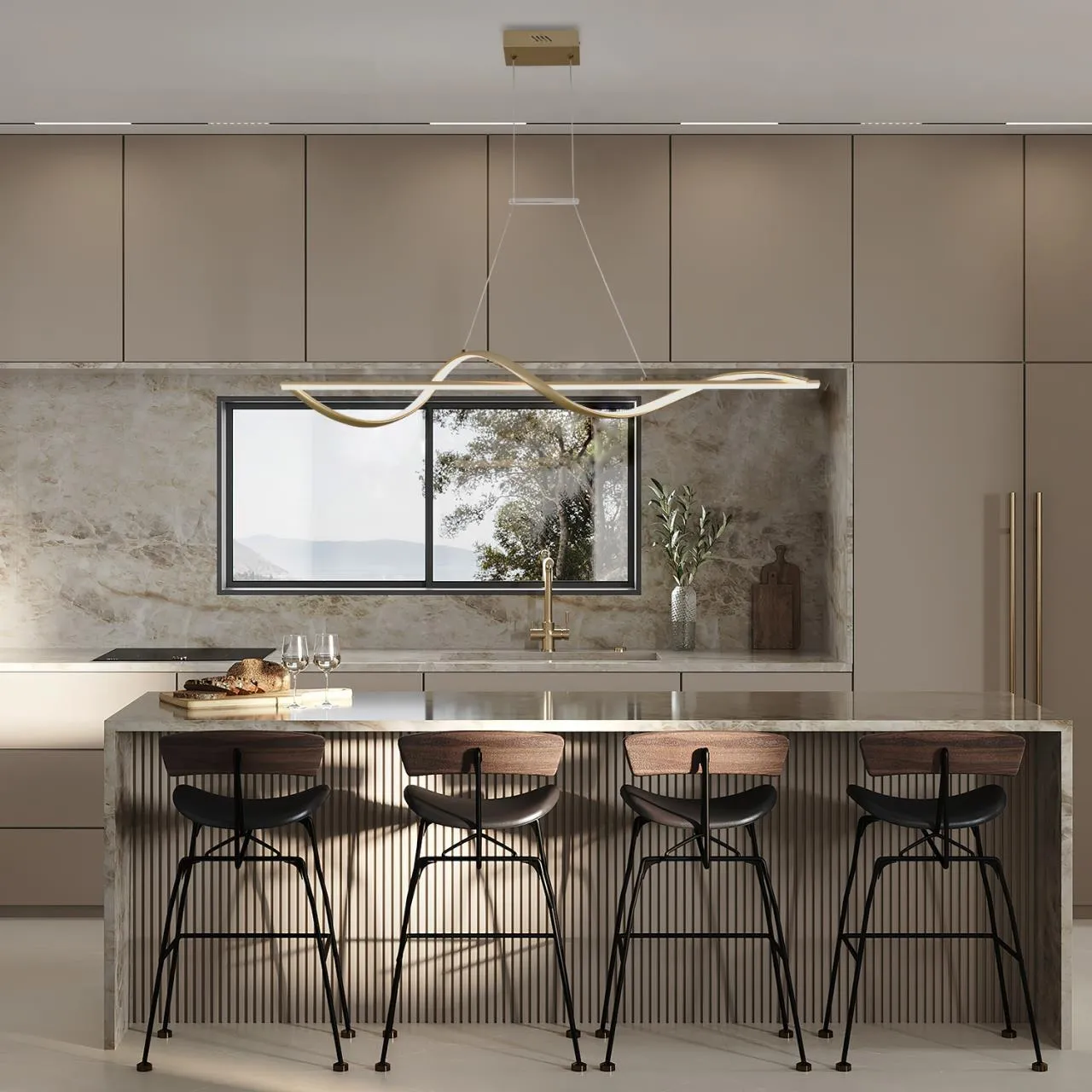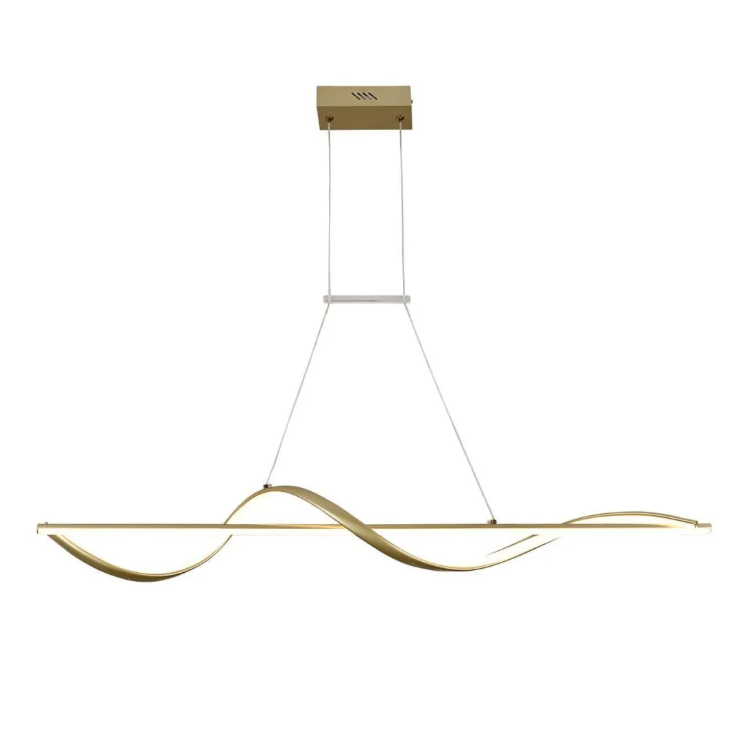 подвесная люстра, каркас золотого матового цвета, жесткий профиль со встроенной лентой LED декорирован гибким профилем , который так же оснащен лентой LED, оснащены пультом дистанционного управления.