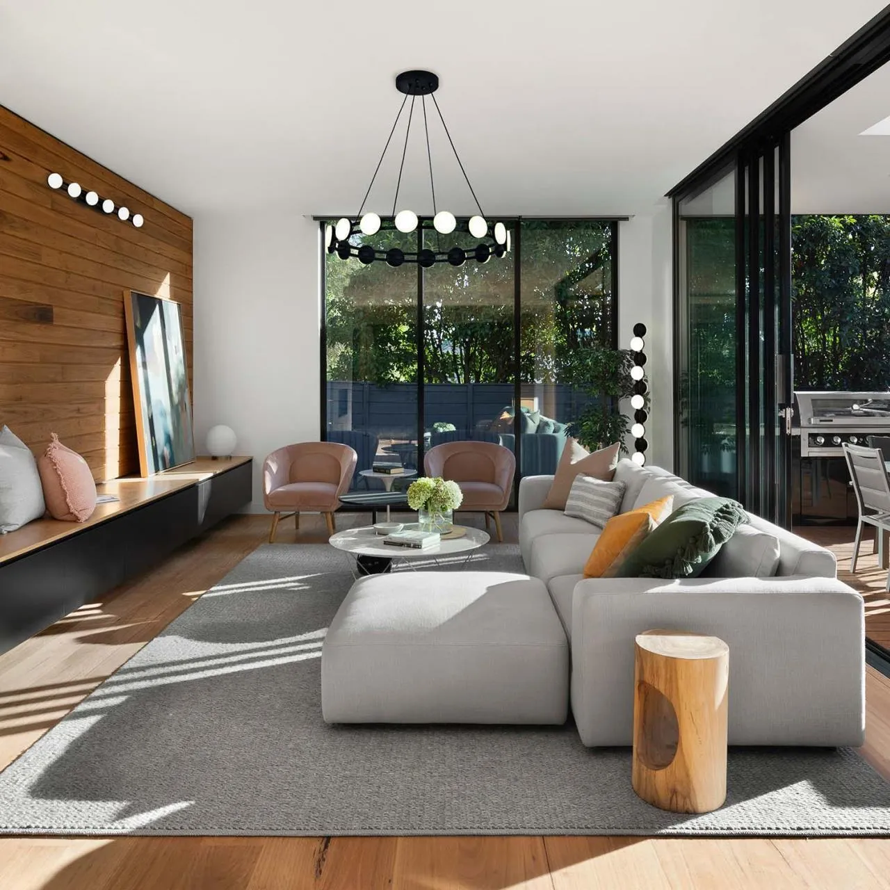 Каркас из металла черного матового цвета, круглые плоские плафоны белого цвета с акриловым рассеивателем, LEDмодуль.