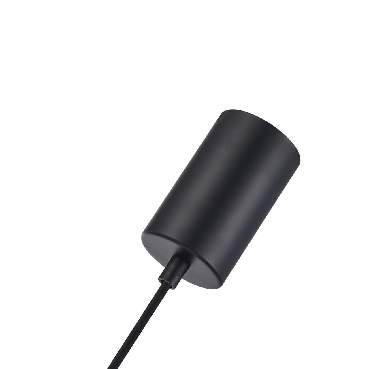 Подвес с каркасом в черном матовом цвете, плафон из стекла белового матового цвета имеет вертикальные линии и ребристую текстуру с "поясом" из ромбиков поясом по центру. Цоколь E27, регулируемая высота.