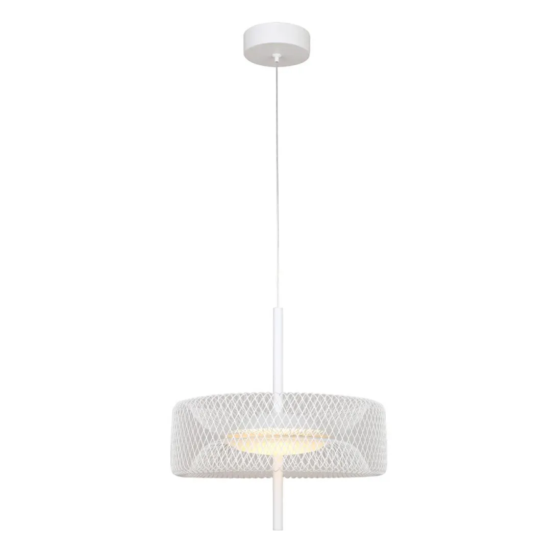 Металлический каркас белого цвета, плафон из ажурной металлической сетки, LED-элемент, регулируемая высота.