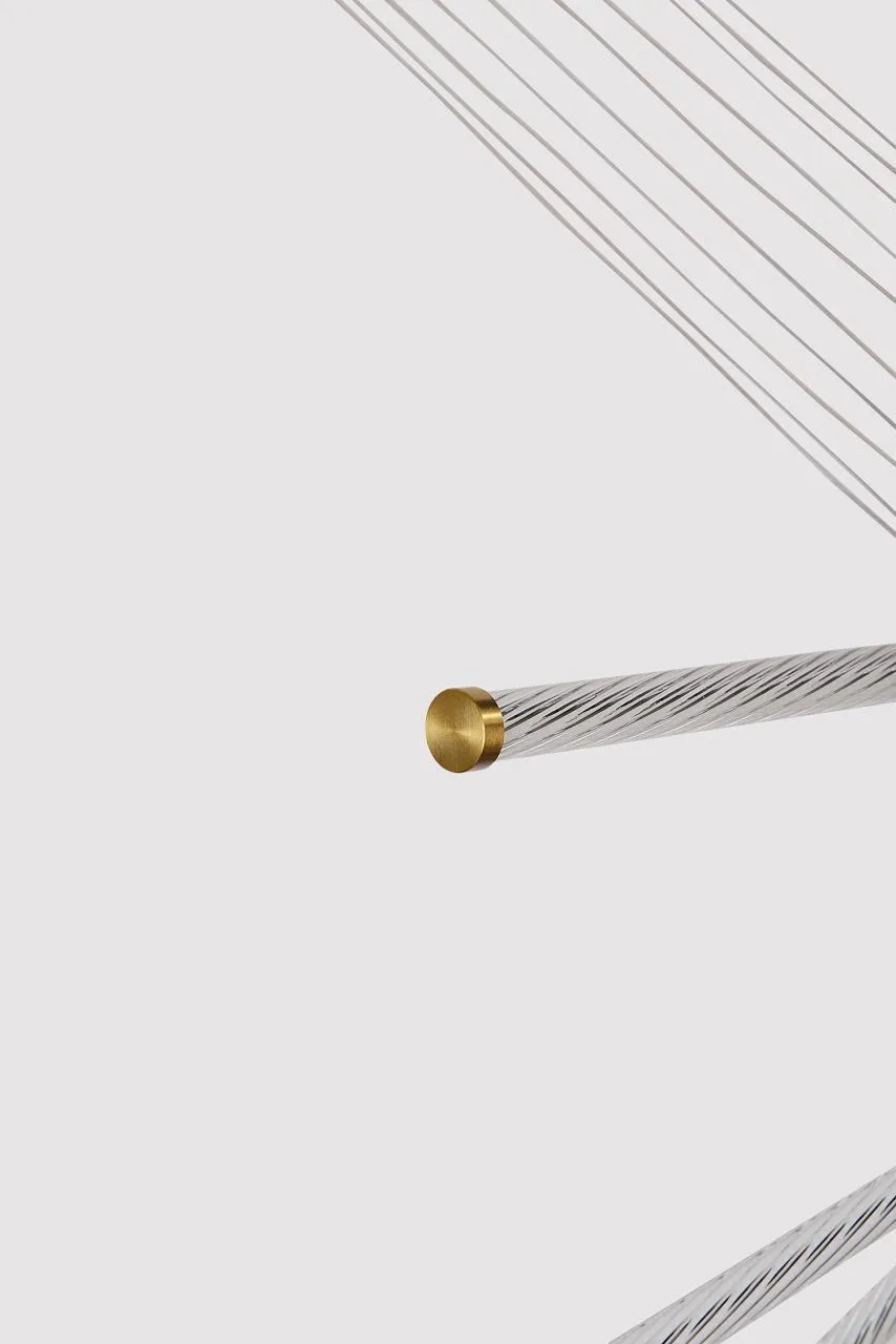 Металлический каркас в цвете латунь, световой элемент представлен композицией из акриловых трубок со спиральным узором, регулируемая высота.