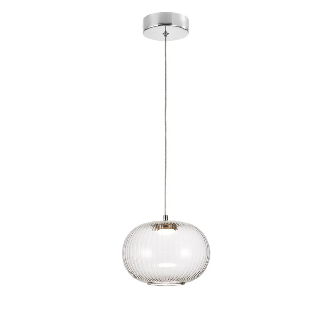 Подвес с каркасом в цвете хром, с выдувным прозрачным плафоном в виде сферы, LEDмодуль, регулируемая высота.
