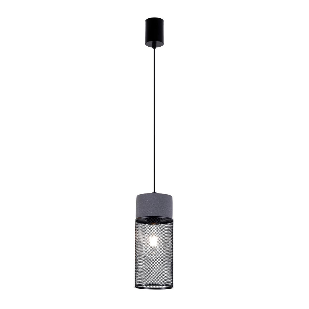 Каркас из металла черного цвета, цилиндрический плафон с металлической решеткой, декоративный элемент из цемента, регулируемая высота.