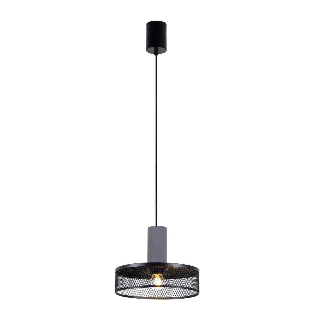Каркас из металла черного цвета, цилиндрический плафон с металлической решеткой, декоративный элемент из цемента, регулируемая высота.