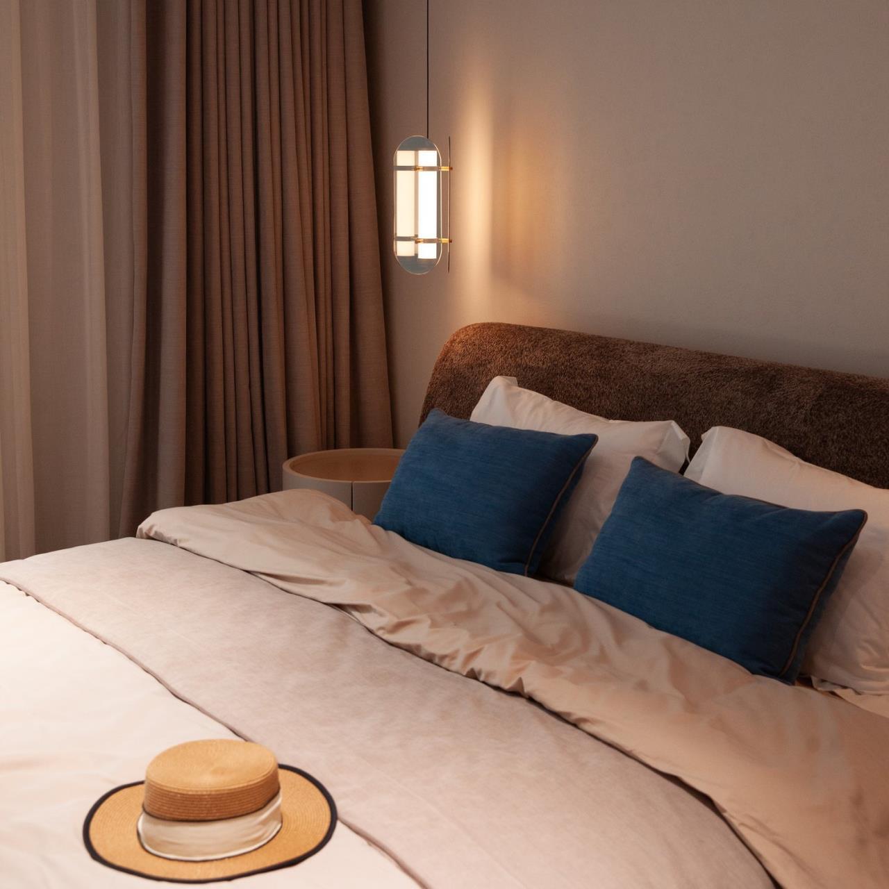 Каркас из металла цвета латунь, плафоны из  полупрозрачного стекла дымчатосерого цвета, рассеиватель из белого акрила, регулируемая высота, LEDмодуль.