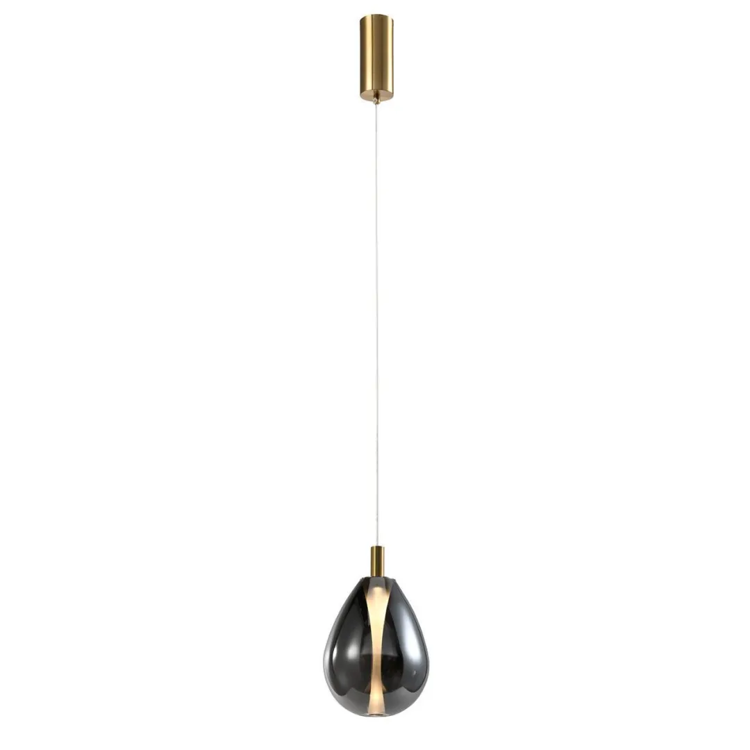 Подвес с каркасом в цвете латунь, с дымчатосерым плафоном, регулируемая высота, COB.