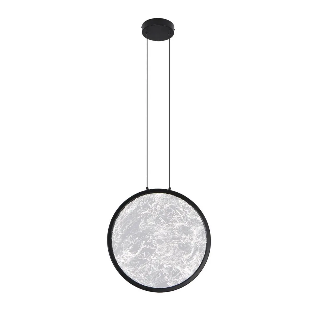 Металлический каркас в цвете матовый черный, плафон из акрила с эффектом дыма, лента LED расположена по внутреннему периметру плафона, регулируемая высота.