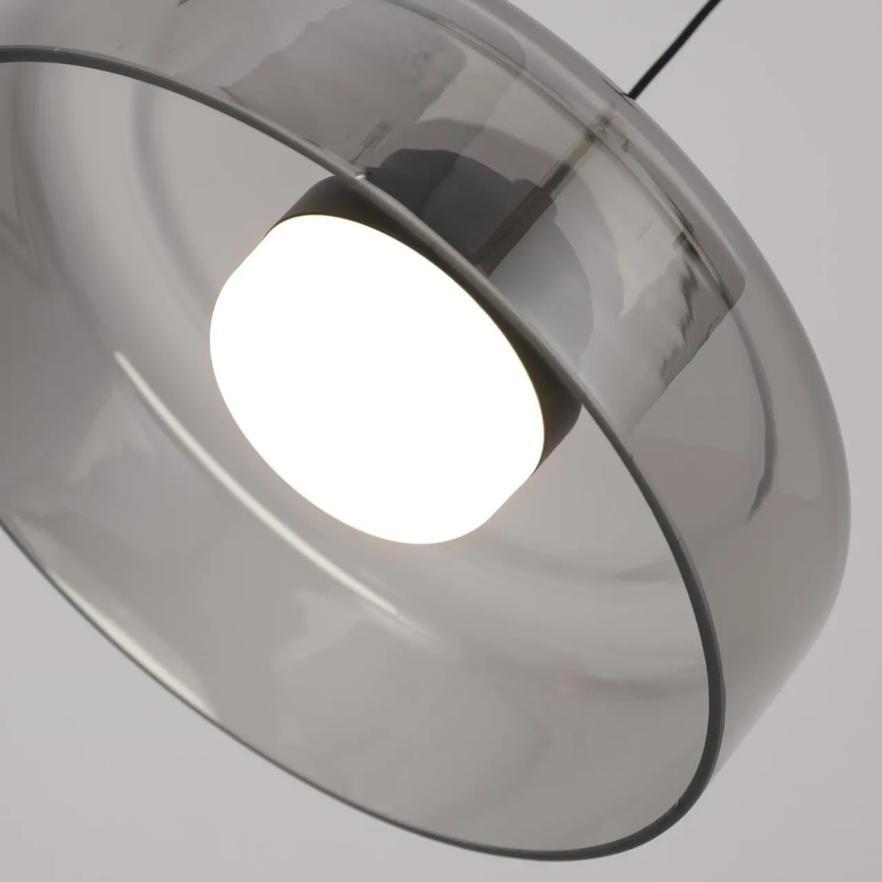 Металлический каркас черного цвета с зеркальносерым плафоном из акрила, модуль LED, регулируемая высота.