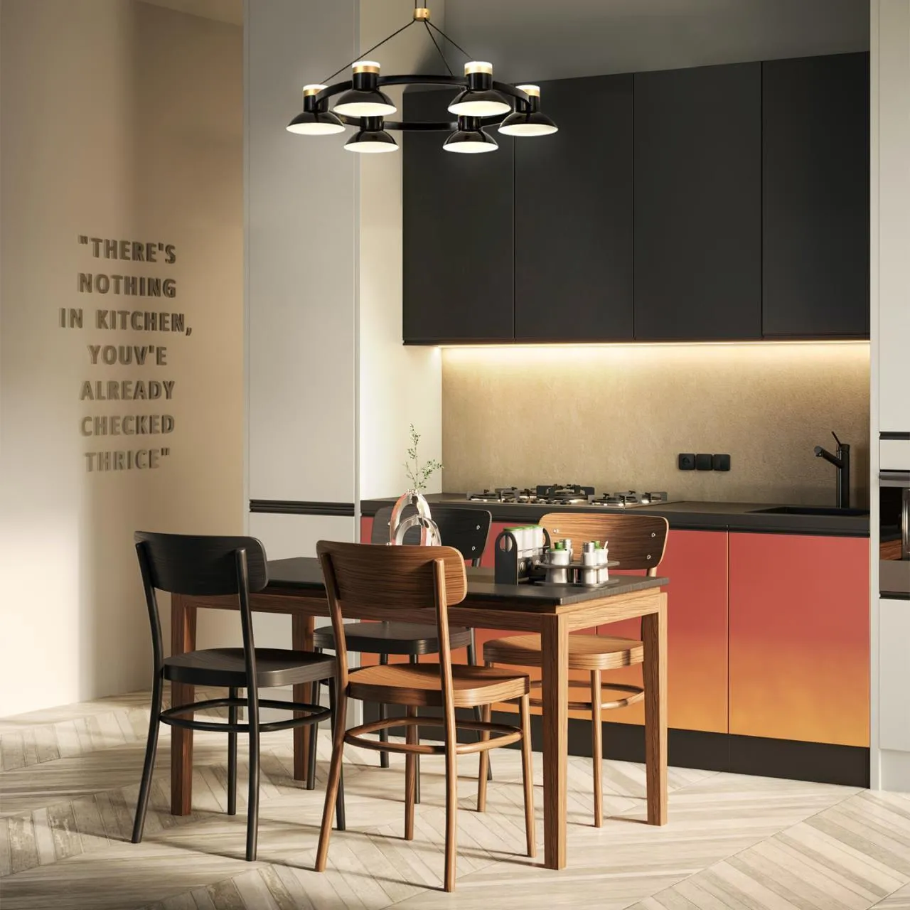 Черный глянцевый металлический каркас, акриловый плафон внутри абажура, дополнительный декоративный источник света в верхней части абажура, декоративный элемент из металла в цвете матовое золото.