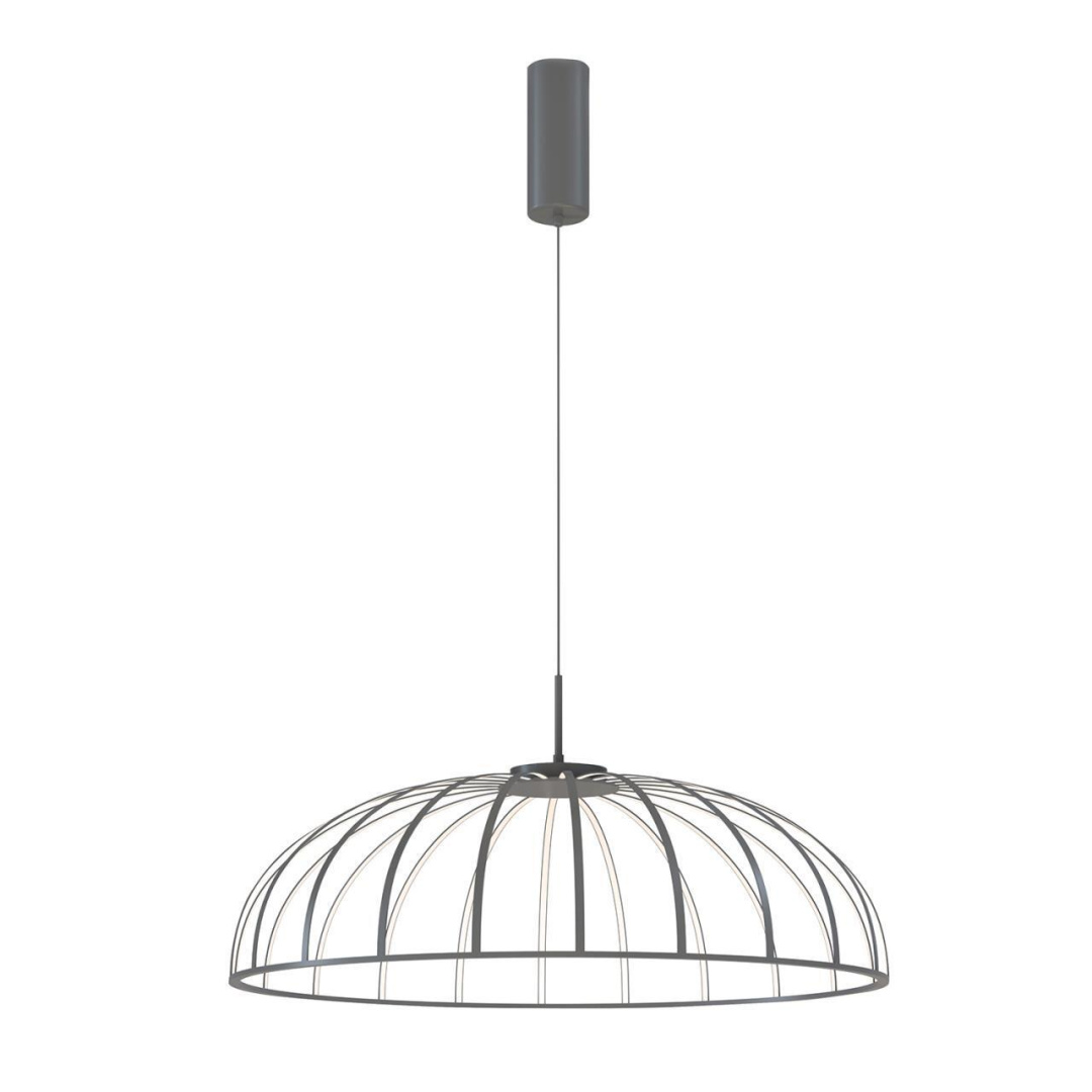 Металлический каркас в темносером цвете. Источником света являются расходящиеся из центра лучи, выполненные из тонких металлических трубок с лентой LED, регулируемая высота.