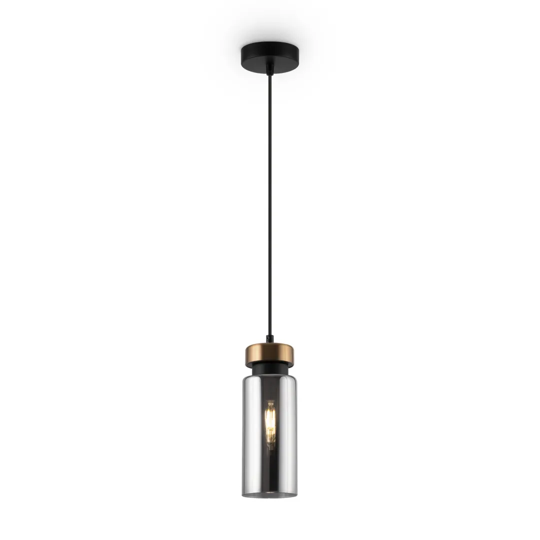 Сочетание индустриального модернизма и минималистской эстетики в серии Come украсит любой современный интерьер. Арматура сделана из металла и объединяет два традиционных для промышленного дизайна оттенка: черный и золотой. Стеклянный плафон дополняет палитру светильника трендовым серым цветом. Его вытянутая цилиндрическая форма идеальна для направленной, акцентной зональной подсветки. Модель даёт приглушенный свет, подходящий для зон отдыха в гостиной, рабочей и обеденной зоны на кухне. Комбинация из нескольких подвесов сделает освещение ещё более атмосферным и ярким. Светильник подойдет как для частных, так и общественных помещений, оформленных в стиле лофт, минимализм, сканди, техно.