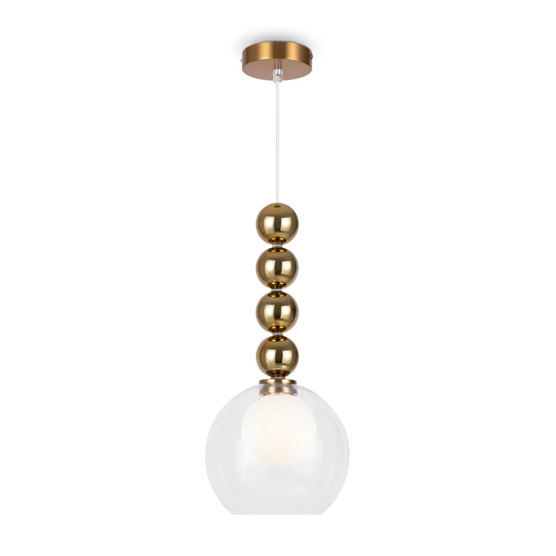 Серия, объединившая расслабленную атмосферу фьюжн и модерновое настроение. Архитектура подвесов построена на плавных, обтекаемых формах – декоративных сферах и плафоне с округлым силуэтом. Сочетание двойного стекла матовго и прозрачного  отлично рассеивает световой поток, обеспечивая  зональную подсветку. Металлическая арматура окрашена в популярные оттенки золота и хрома на выбор. Подвесы разных форм легко комбинировать в группы, создавая эксклюзивные композиции и индивидуальные сценарии подсветки. Визуально легкий, лаконичный дизайн гармонично смотрится в минималистичных и модерновых интерьерах, обстановках в стиле сканди, эклектика, контемпорари.