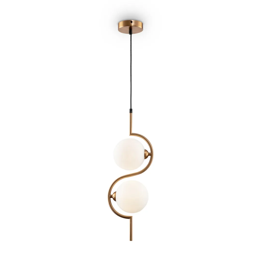 Плавные симметричные контуры создают визуально легкий и гармоничный облик серии. Символика «инь-ян» и трендовый силуэт сферы – образа бесконечности – наполняют дизайн метафорическим смыслом. Минималистичная металлическая арматура окрашена в цвет латуни. Сферическая форма плафонов обеспечивает равномерное распределение светового потока, а матовое стекло делает его мягким, комфортным для наблюдателя. Серия включает бра и подвес, позволяя сформировать комплексные сценарии освещения. Высота подвесного светильника регулируется. Лаконичный дизайн идеален для интерьеров в современном стиле, mid-century modern, минимализм, неоклассика.