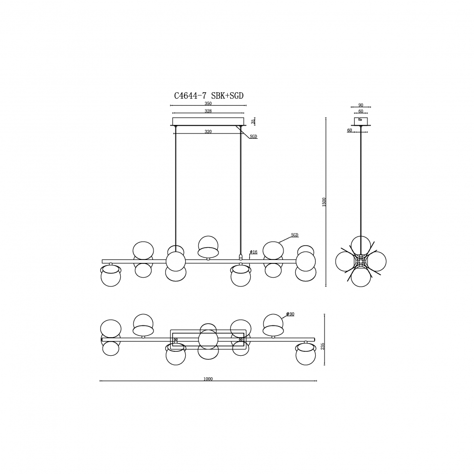 Подвесной светильник iLedex Savage C4644-7 MBK+SGD