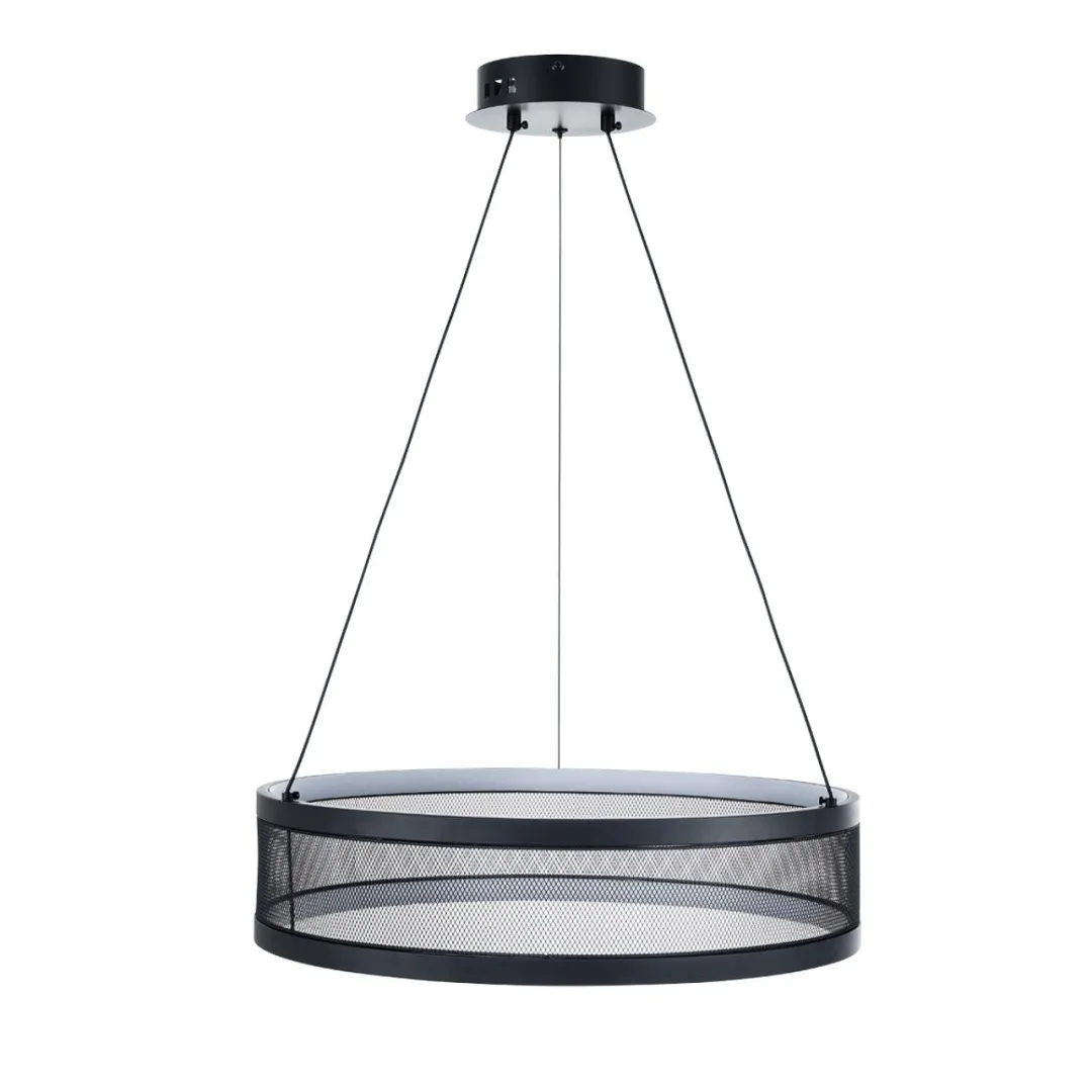 Круглые светодиодные светильники серии FELISITI это новый взгляд на интерьеры в стиле лофт. Сетчатое металлическое кольцо внутри обрамляют две тонких ярких линий света. Светильник брутален, когда он выключен и не теряет своего характера во включенном состоянии. Особенностью этого подвеса является то, что цветовая температура 3000К-4000К-6000К выбирается на драйвере при установке светильника. Есть возможность регулировки по высоте.