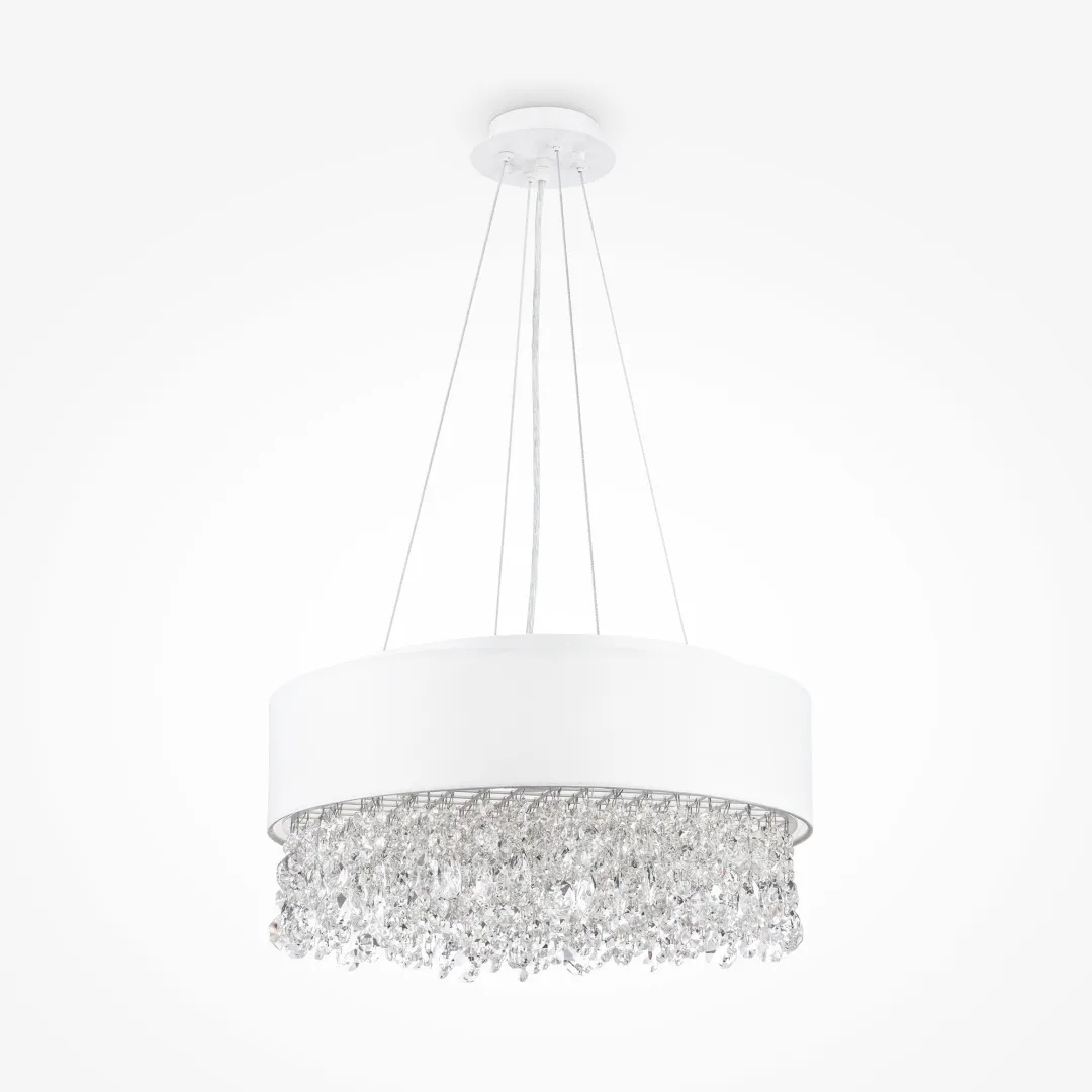 При создании серии Manfred использовались современные материалы. Радужные переливы света в массе граненых кристаллов смягчает пояс из белой ткани, нанесенной на ПВХ. Модели серии станут прекрасным выбором при создании как классического, так и современного интерьера. Высоту подвесных светильников возможно отрегулировать, изменяя длину тросов.