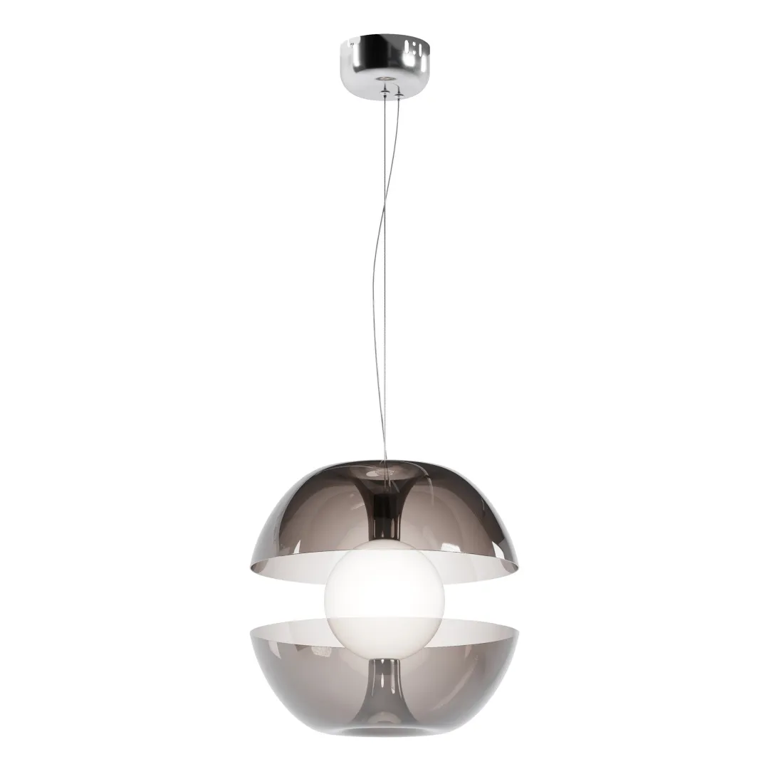 Материал арматуры — мелалл. Цвета — черный, хром. Внешний стеклянный декор: золотой, дымчатый. Плафон из матового белого стекла. Тренд - оптическая иллюзия, эффект парения светового элемента. LED-источнк света, цветовая температура 3000К. Регулируемая длина тросов.