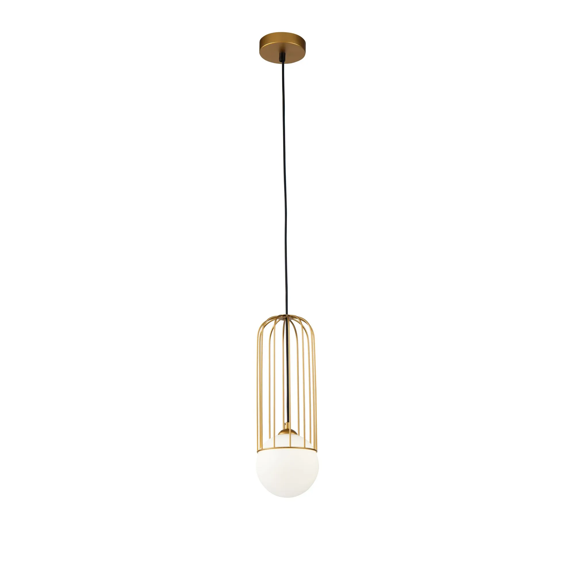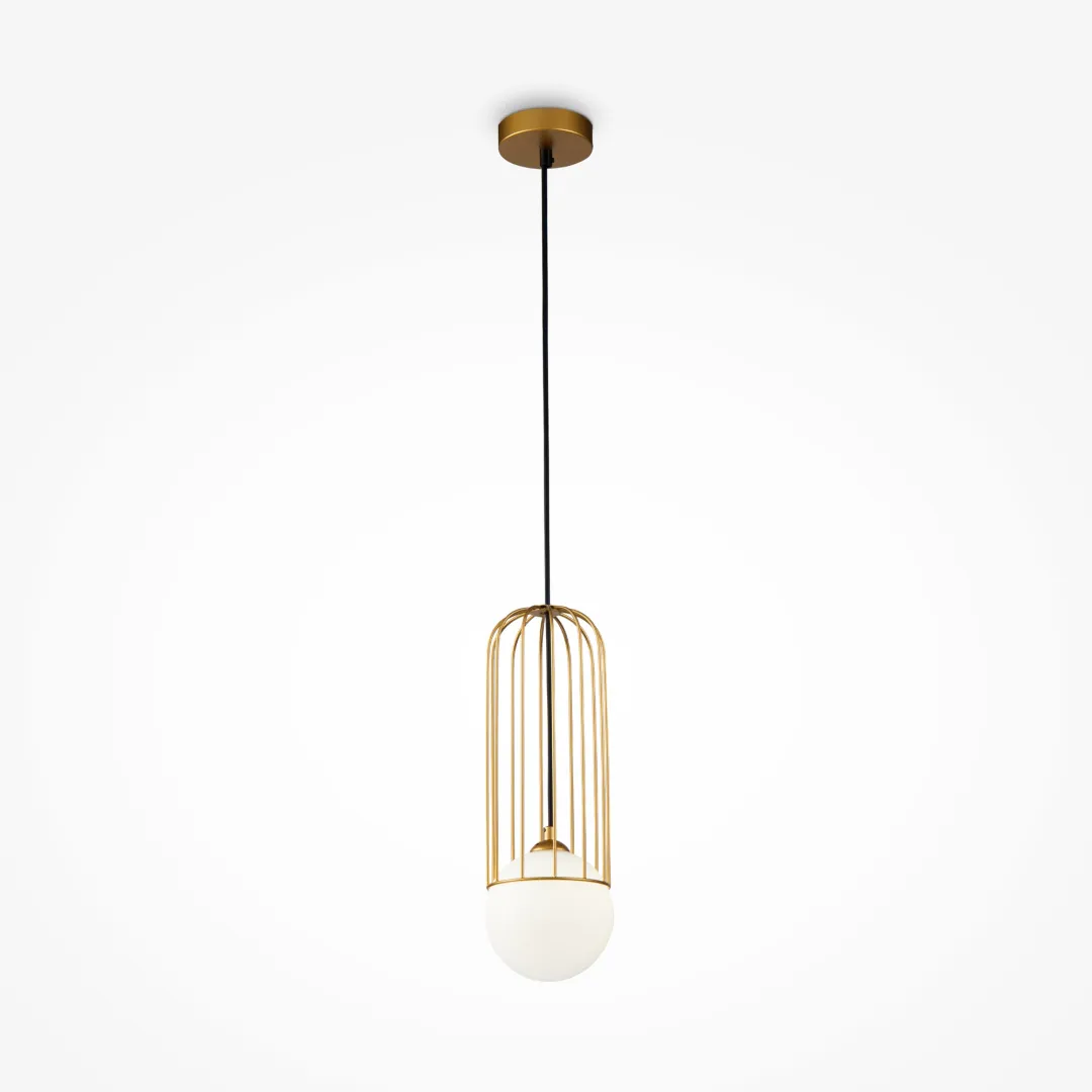 Конструкция светильников представляет собой матовый стеклянный плафон, сверху которого закреплена декоративная пространственная решетка из стальной проволоки. Металлические детали светильников окрашены в золотой цвет. Модели серии представлены в трех разных размерах. Высоту подвесных светильников можно отрегулировать, изменяя длину шнура.