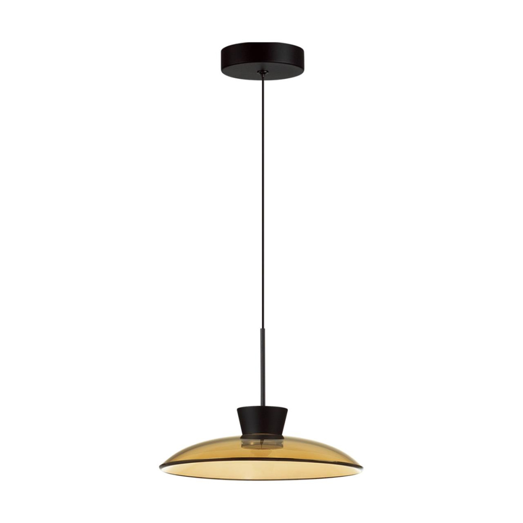Стеклянные светодиодные подвесы Saucer представлены в двух цветовых решениях — дымчатый/черный и янтарный/черный. Цветовая температура 3000К (теплый свет).