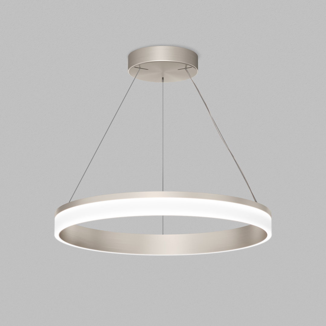 RING — это коллекция подвесных светильников, где геометрическая форма кольца становится центральным элементом дизайна. Лаконичная конструкция в текстуре «сатинированный никель» и мягкий рассеянный свет создают гармоничную атмосферу в любом пространстве. Срок гарантии 3 года.