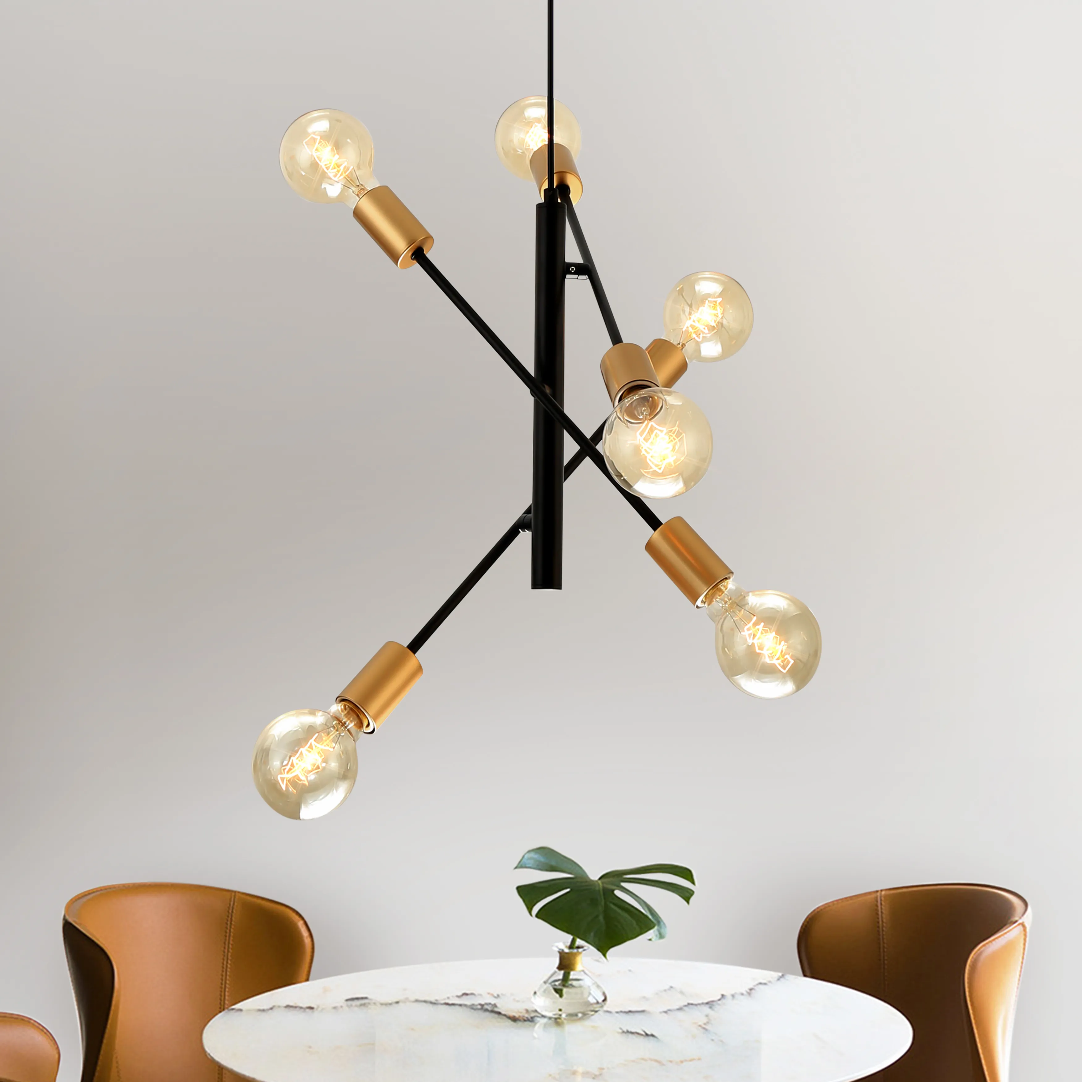 <p>Данная люстра на регулируемом при монтаже подвесе применяется с 6 лампами Е27 40 Вт и освещает 18 м². Открытые источники света без плафонов - актуальное интерьерное решение. В такой люстре хорошо смотрятся филаментные лампы с имитацией нитей накаливания. </p>