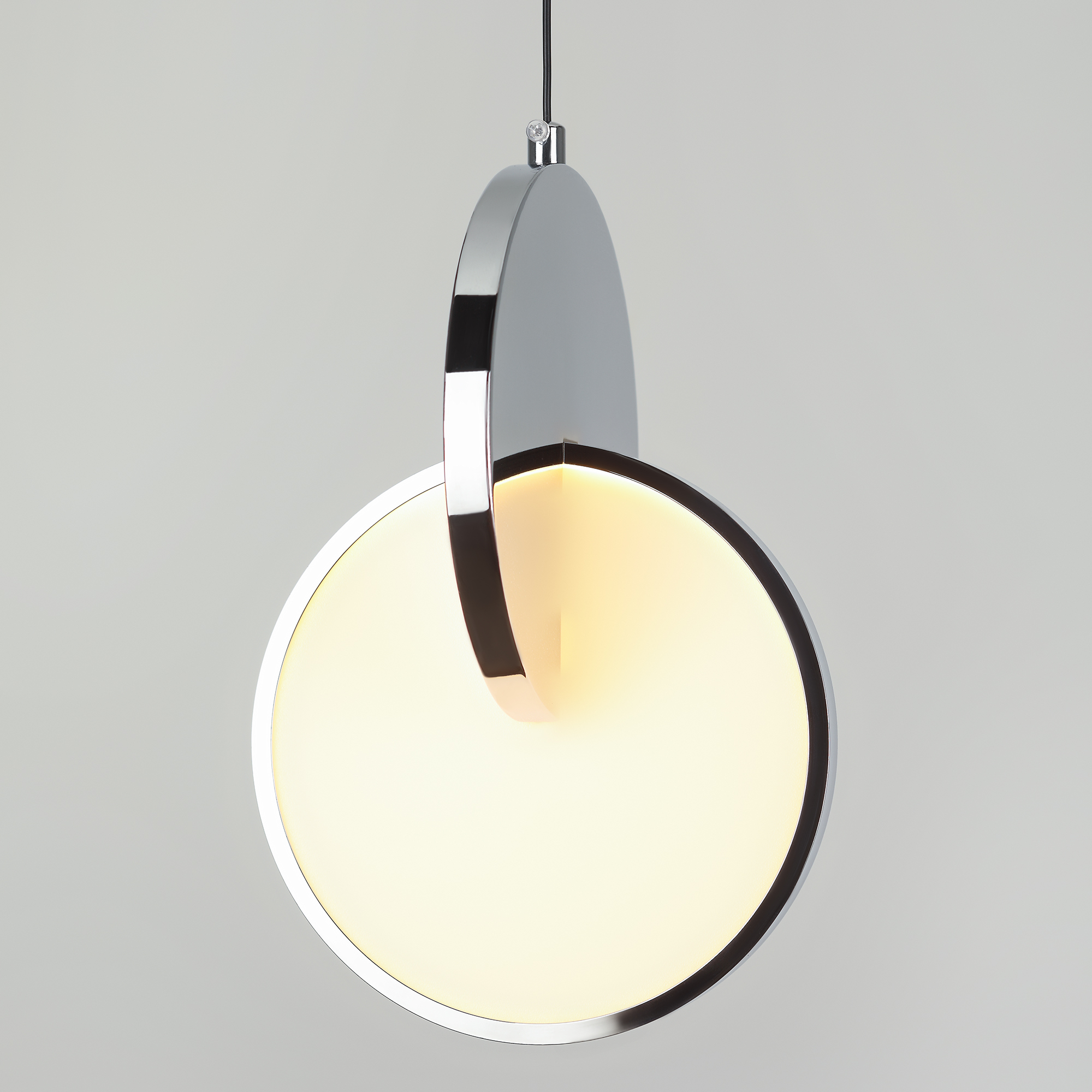 Светодиодные подвесы с регулируемой высотой, в цветах медь и хром. Мощность 10Вт, температура света 3000К. Рассеиватель в форме диска для равномерного освещения.