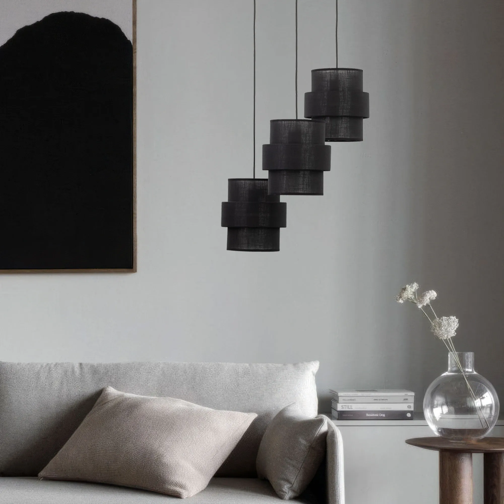 Светильник с плафонами оснащен системой регулировки высоты подвеса, позволяющей размещать изделие на разных уровнях, уменьшая или увеличивая угол рассеивания светового потока. Подвесной светильник элементарно устанавливается на натяжных потолках при помощи монтажной планки.