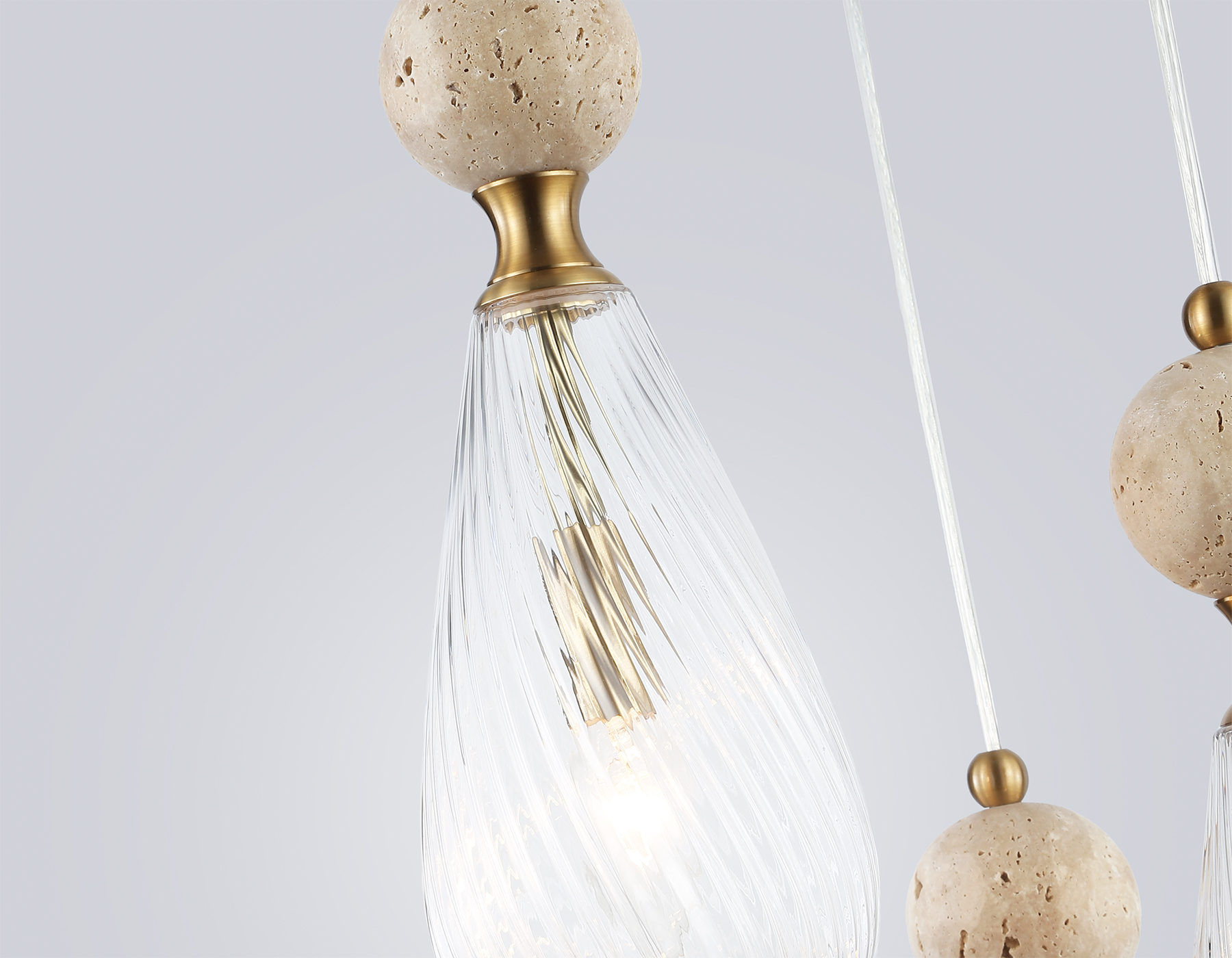 Подвесной светильник с травертином из коллекции HIGH LIGHT. Модель LH53284 представлена в современном стиле неоклассика. Светильник выполнен из металла цвета латунь, стеклянных плафонов и декорирован элементами из травертина. Для данной модели подойдет сменная лампа с цоколем Е14. Светильник будет прекрасным дополнением в любом помещении.