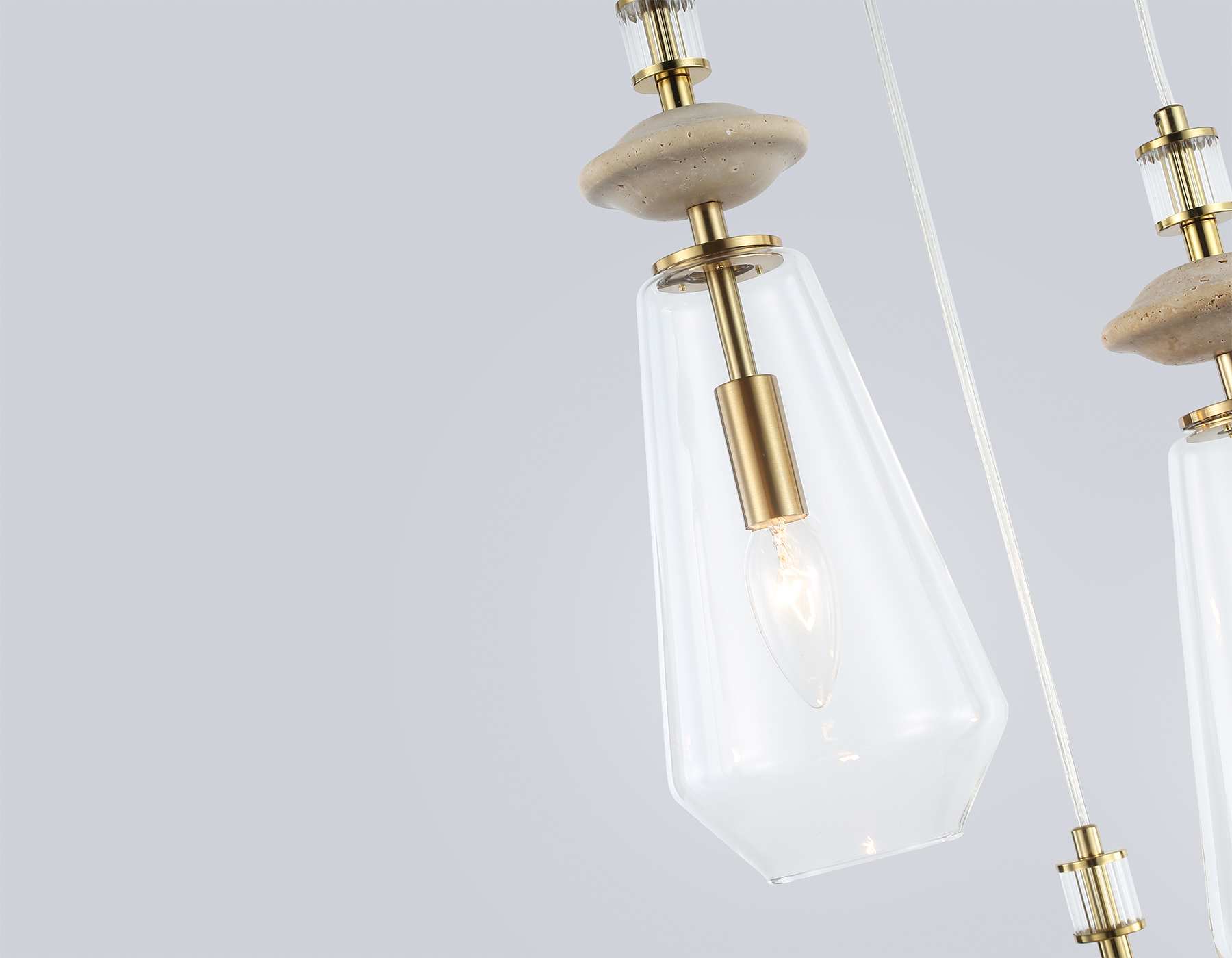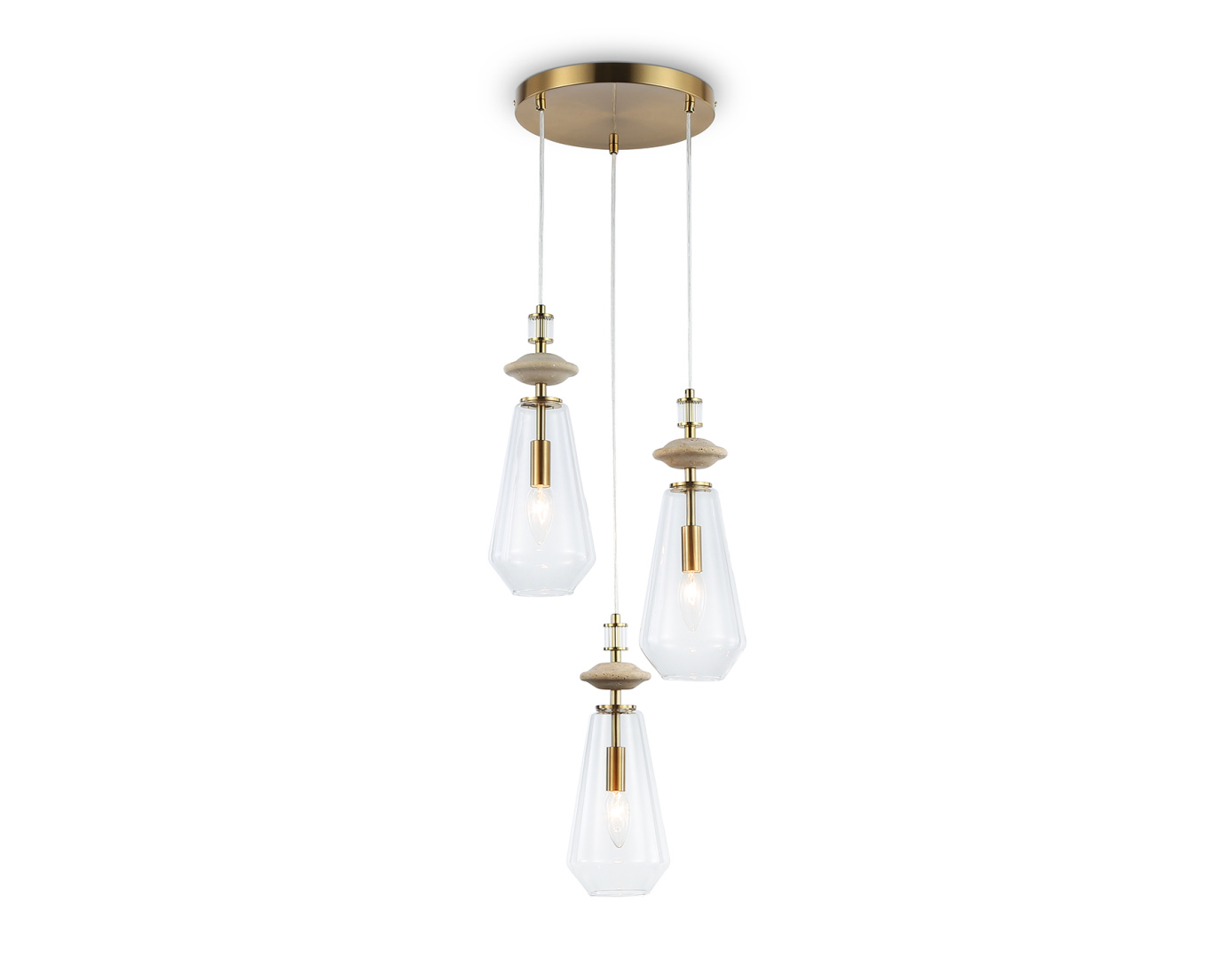 Подвесной светильник с травертином из коллекции HIGH LIGHT. Модель LH53302 представлена в современном стиле неоклассика. Светильник выполнен из металла цвета латунь, стеклянных плафонов и декорирован элементами из травертина. Для данной модели подойдет сменная лампа с цоколем Е14. Светильник будет прекрасным дополнением в любом помещении.