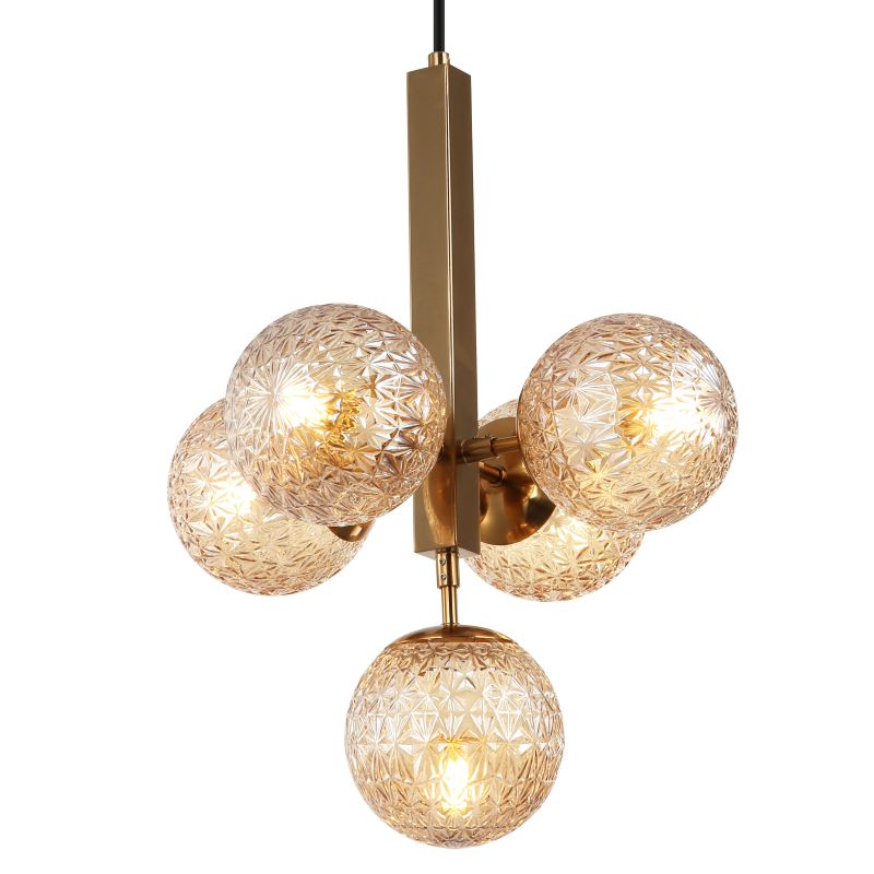Светильник подвесной из коллекции Felis выполнен из металла, гальванизированного в цвет бронзы, и декорирован плафонами из фактурного стекла янтарного цвета. Премиальное качество и неповторимыи? дизаи?н светильников идеально подои?дут в современные дизайнерские интерьеры.