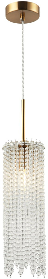 Светильник подвесной коллекции Marelli выполнен из металла, гальванизированного в цвет бронзы, и декорирован прозрачными стеклянными сферами, собранными в элегантные бусы.