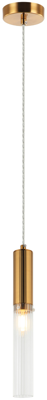 Светильник подвесной из коллекции Satori выполнен из металла, гальванизированного в цвет бронзы, и декорирован вытянутым прозрачным стеклянным плафоном с линейным декором. Провод на подвесе выполнен из перекрученного прозрачного шнура в винтажном стиле. Данная серия идеально сочетается с сериеи? WUNDER.