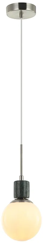 Светильник подвесной из коллекции Sharo выполнен из металла, гальванизированного в цвет никеля, и декорирован натуральным мрамором. Источник света закрыт белым глянцевым плафоном. Провод на подвесе выполнен из перекрученного прозрачного шнура в винтажном стиле. Премиальное качество и неповторимыи? дизаи?н светильников идеально подои?дут как в классические, так и современные дизайнерские интерьеры.