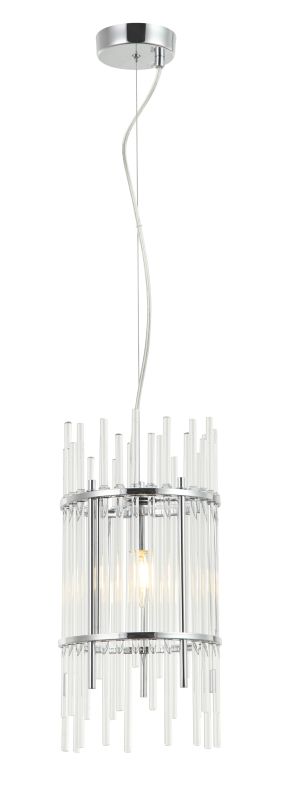 Светильник подвесной из коллекции Sia выполнен из металла, гальванизированного в цвет хрома, и декорирован прозрачными стеклянными трубочками. Каркас подвесного светильника отделан металлическими кантами и дополнительно закрепленными металлическими стержнями, гальванизированными в цвет арматуры. Премиальное качество и неповторимыи? дизаи?н светильников идеально подои?дут как в классические, так и современные дизайнерские интерьеры.