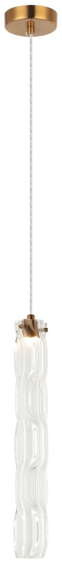 Светильник подвесной из коллекции Still выполнен из металла, гальванизированного в цвет бронзы, и декорирован вытянутым стеклянным плафоном с волнистой фактурой. Провод на подвесе выполнен из перекрученного прозрачного шнура в винтажном стиле.