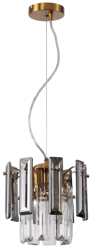 Светильник подвесной из коллекции Ton выполнен из металла, гальванизированного в цвет бронзы, и декорирован прозрачным и дымчатым хрусталем высшей категории прямоугольной формы. Подвес выглядит респектабельно и современно.