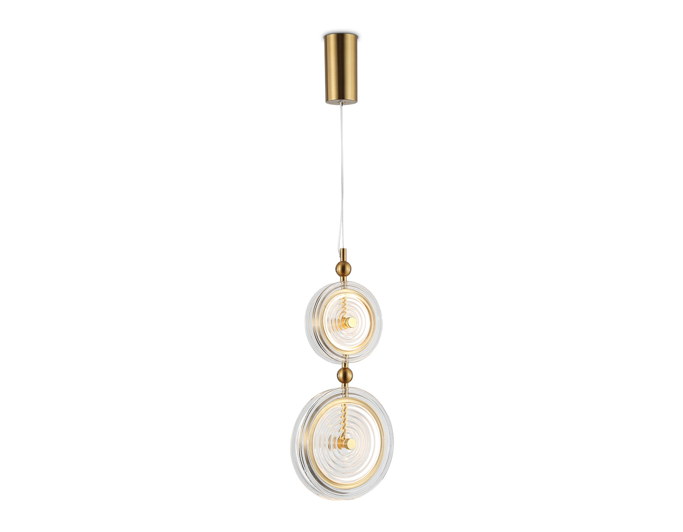 Подвесной светодиодный светильник из коллекции HIGH LIGHT. Модель LH31127 представлена в стиле неоклассика. Светильник выполнен из металлического каркаса цвета латунь и двух стеклянных плафонов. Эта модель оснащена встроенными светодиодами, благодаря чему вы забудете о замене дополнительных ламп. Светильник будет прекрасным дополнением в любом помещении.