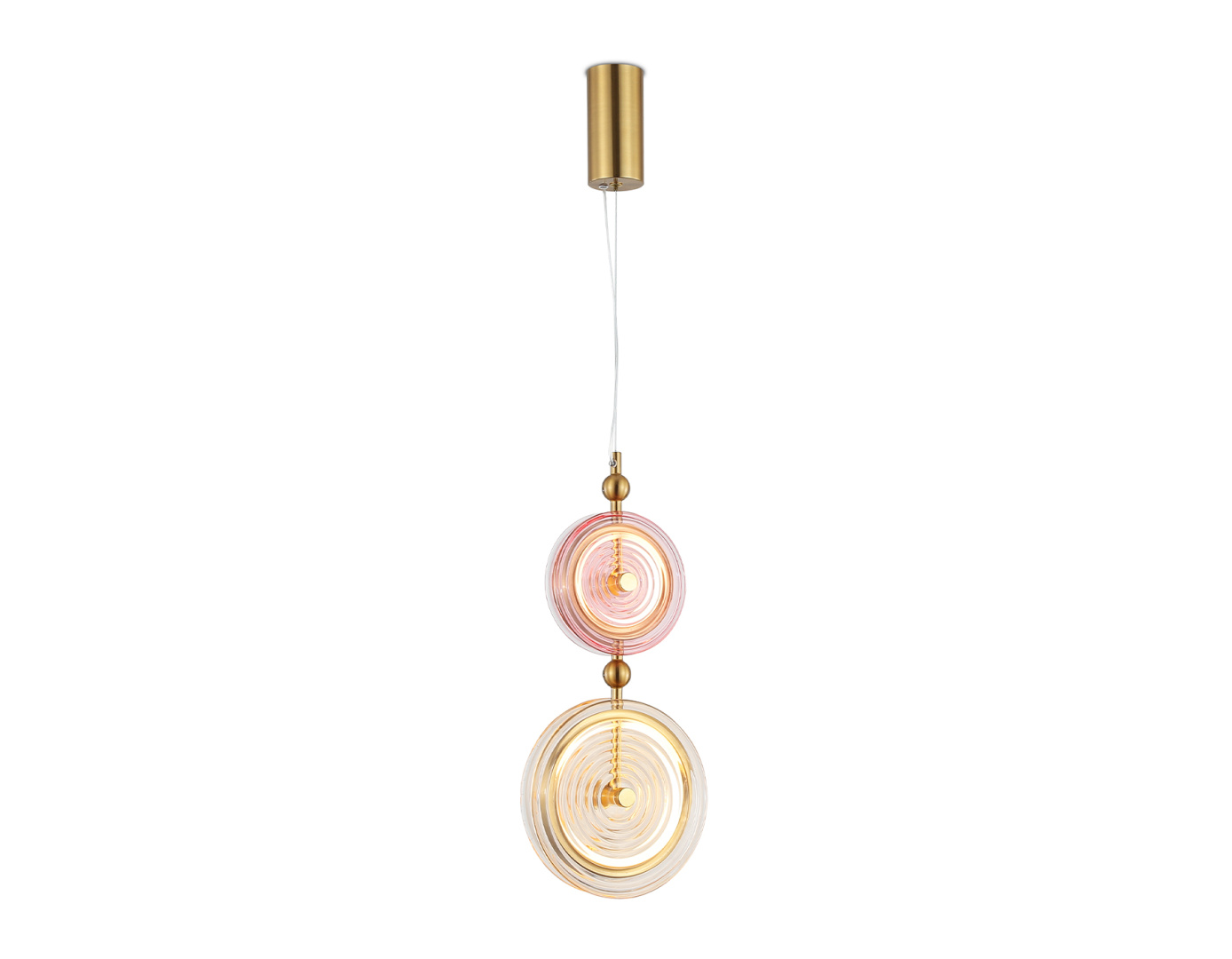 Подвесной светодиодный светильник из коллекции HIGH LIGHT. Модель LH31129 представлена в стиле неоклассика. Светильник выполнен из металлического каркаса цвета латунь и двух стеклянных плафонов розового и желтого оттенков. Эта модель оснащена встроенными светодиодами, благодаря чему вы забудете о замене дополнительных ламп. Светильник будет прекрасным дополнением в любом помещении.