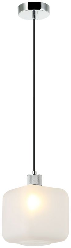 Одиночный подвес из серии Square имеет металлическую арматуру, гальванизированную в цвет хрома и декорирован прямоугольным плафоном из оплавленного стекла белого матового цвета. На подвесе дополнительно используется металлический фактурный декоративный элемент, гальванизированный в цвет арматуры.