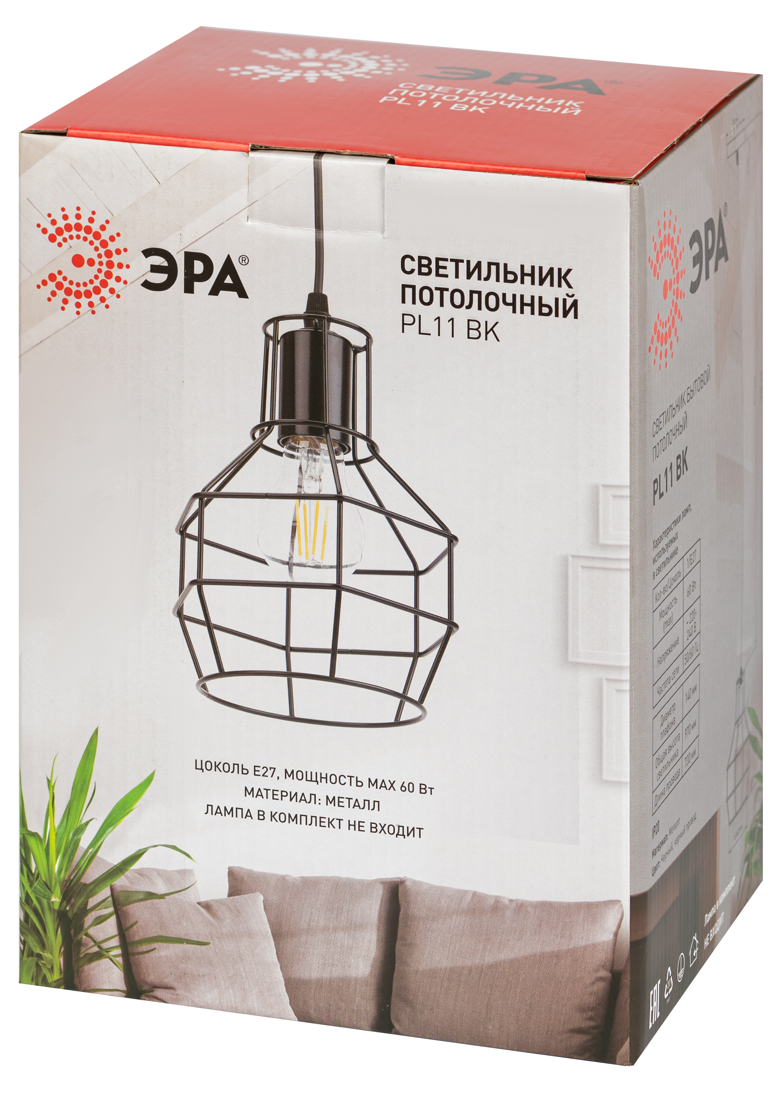Черный подвесной светильник PL11 BK компании Эра отличается выразительным дизайном, благодаря чему органично дополнит интерьер в стиле лофт или хай-тек. Он выполнен в форме решетки с угловатыми сторонами. Длинный провод позволяет размещать лампу на высоких потолках; в помещениях со стандартными потолками подобная лампа будет создавать пространство с ярким светом. Модель имеет цоколь Е27, подходит для лампы накаливания 60 Вт внутри помещений. Черный подвесной светильник впишется в интерьер кафе, кухни, столовой, балкона или магазина. Данная модель наилучшим образом сочетается с филаментной лампой.
