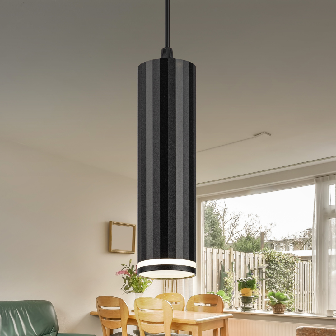 Потолочный подвесной светильник ЭРА PL19 BK MR16 с плафоном в форме цилиндра - идеальный выбор для создания комфортного и стильного освещения в вашем доме или офисе. Благодаря своей конструкции, он прекрасно подходит для монтажа на натяжные и гипсокартонные потолки. В качестве источника света используются лампы с цоколем GU10 и с максимальной мощностью до 12Вт. Обращаем Ваше внимание, лампа в комплектацию не входит. Данный осветительный прибор выполнен из негорючих материалов, что обеспечивает безопасность использования и долгий срок службы. Размеры светильника составляют 5,5 см в диаметре и 20 см в длину, а регулируемый подвес длиной до 150 см позволяет с легкостью настроить желаемую высоту потолочной люстры над поверхностью.
