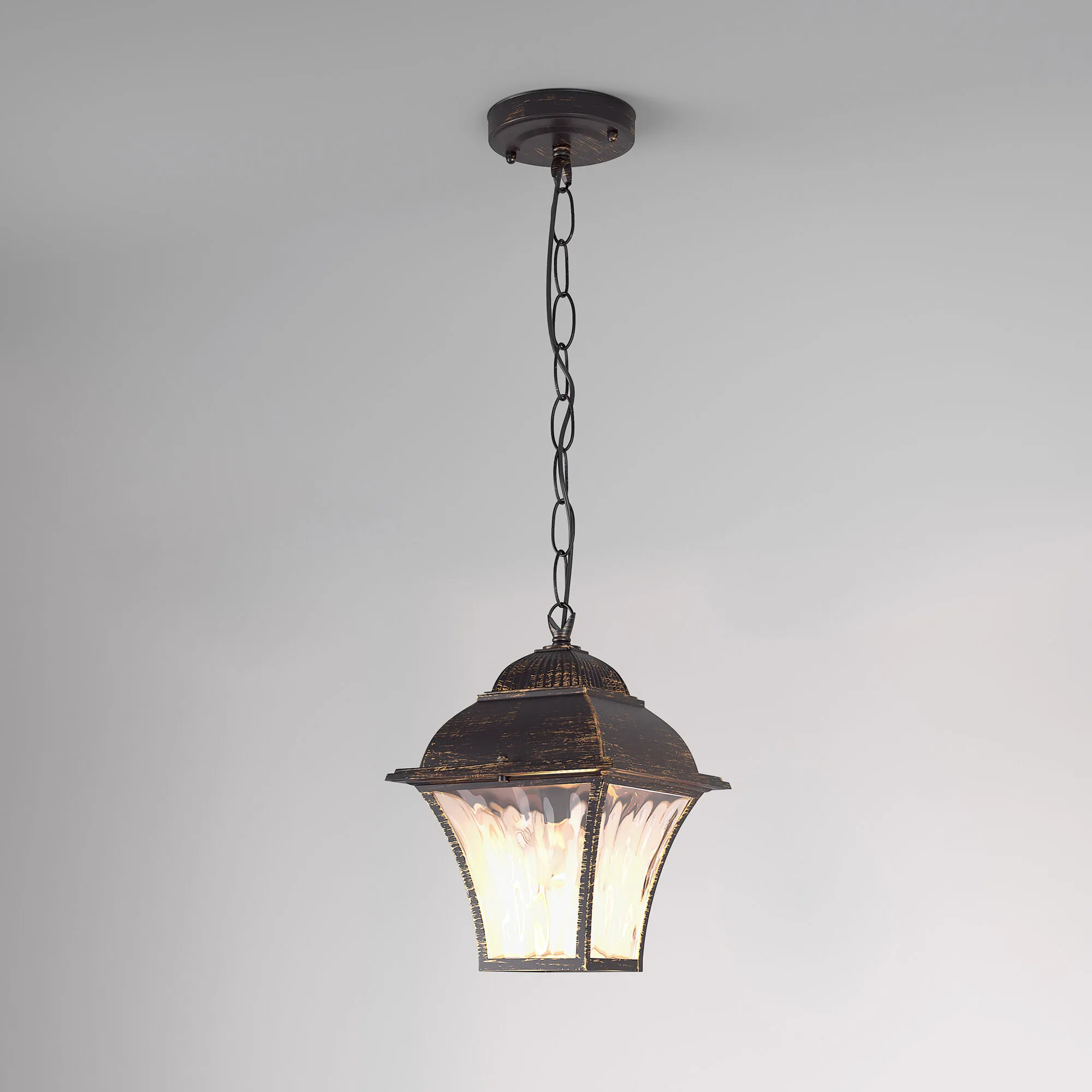 Уличный подвесной светильник Apus H черное золото IP33 предназначен для создания дополнительного освещения, а также декоративной подсветки снаружи помещений. Благодаря стеклянному плафону создает мягкое равномерное свечение.