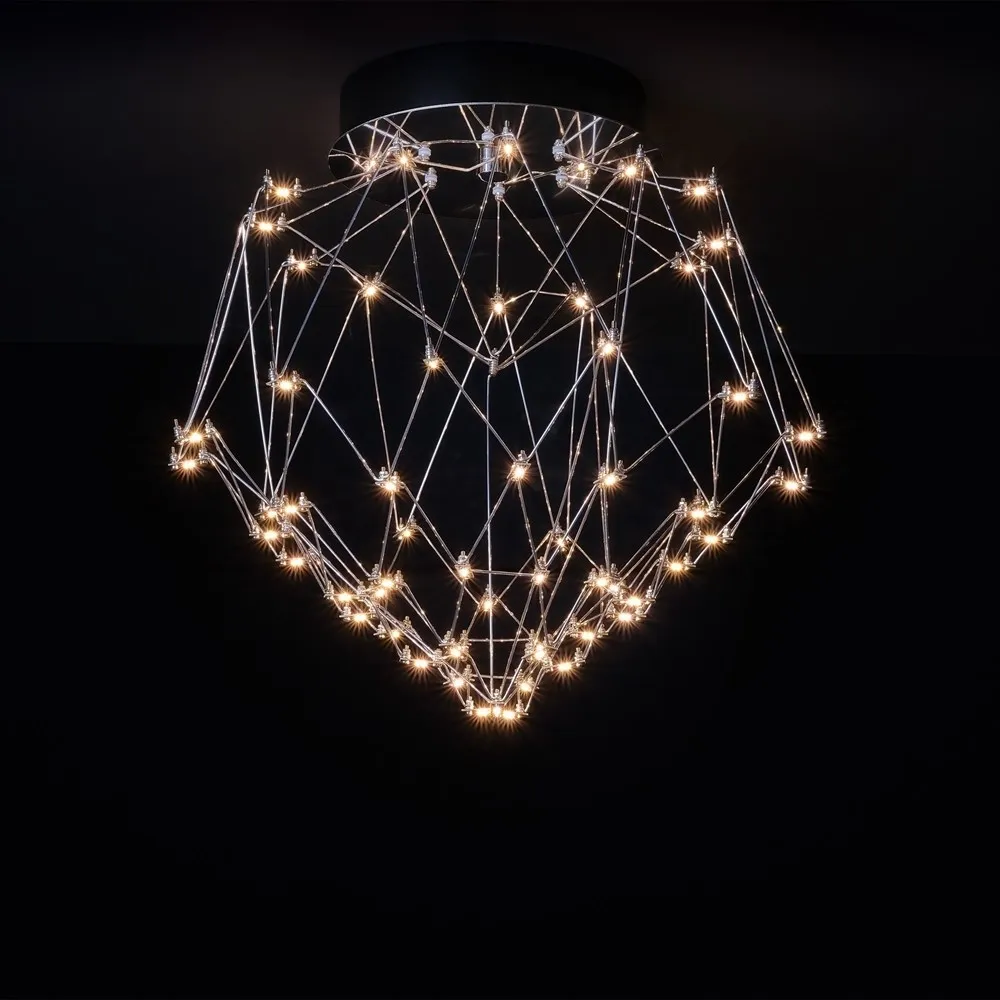 Бриллиант - так переводится название этой модели. Дизайнерская люстра Diamond, действительно, способна стать драгоценным элементом вашего интерьера и подчеркнуть изысканность обстановки. Каркас из тонких прутков нержавеющей стали в форме ограненного камня смотрится благородно. Подсветка из светодиодов имитирует блики на гранях бриллианта. Благодаря элегантному лаконичному дизайну модель уместна как в современном, так и в классическом интерьере.  Изделия собираются вручную.