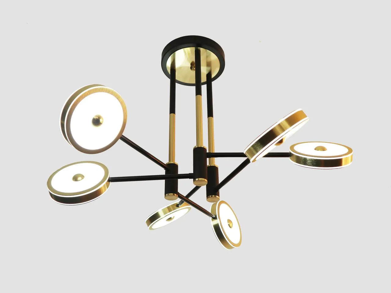 Потолочная люстра – это элегантный элемент интерьера, который придаёт любому помещению стиль и утончённость. Изготовленная с использованием современных технологий, данная люстра обладает изысканной комбинацией черного и матового золота, создавая гармоничный контраст, который приковывает взгляд.Она выполнена из высококачественных материалов: железа, алюминия и акрила, что обеспечивает долговечность и надежность. Данная модель оборудрвана 6 светодиодными ламапми. С высотой 650 мм и шириной 760 мм, она прекрасно подходит для просторных помещений, добавляя им нотки современности и шика. Лампы с белыми акриловыми плафонами мягко рассеивают свет, создавая комфортное освещение.