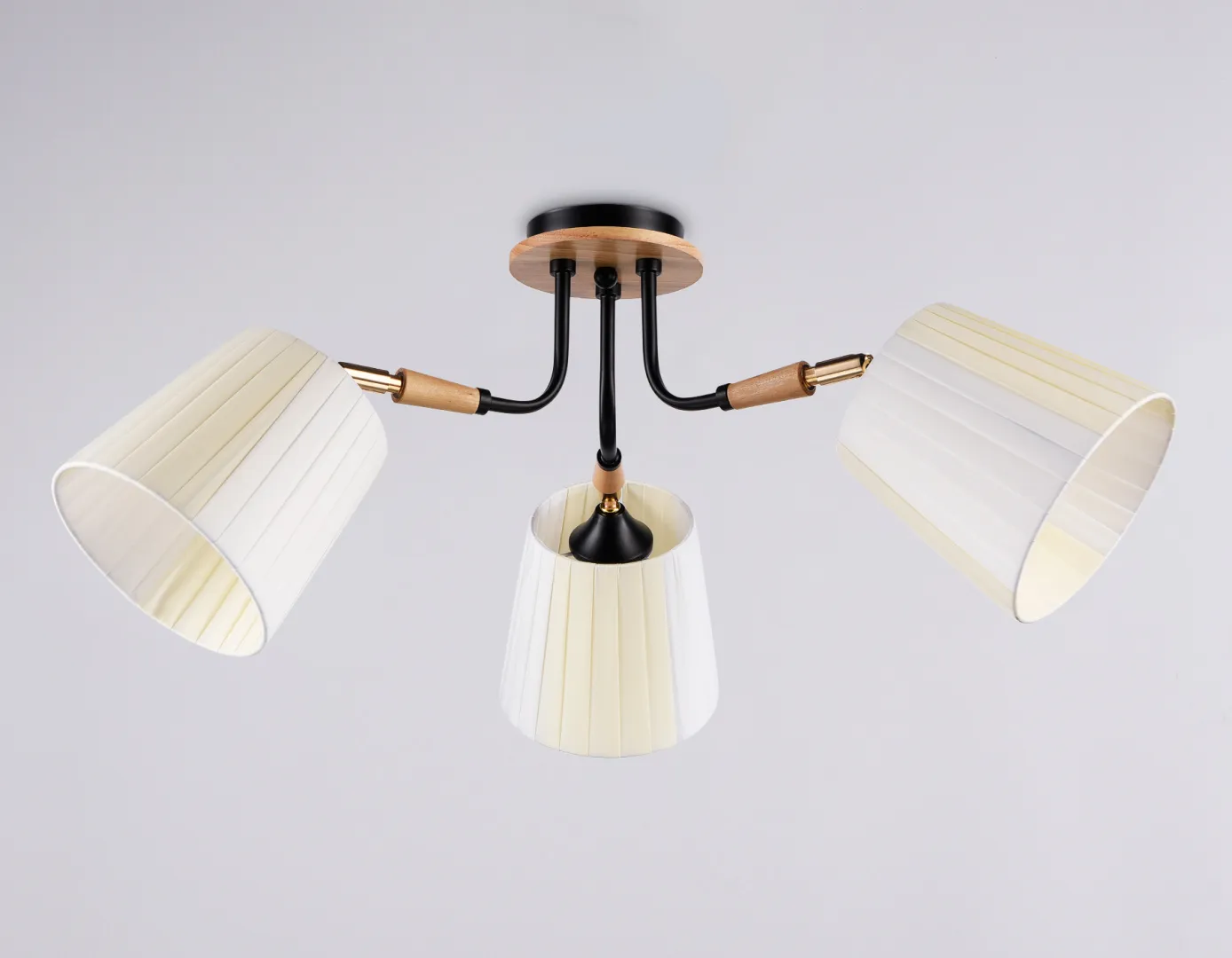 Подвесной светильник из коллекции TRADITIONAL. Модель TR4731 представлена в стиле неоклассика. Светильник выполнен из черного металлического каркаса и тканевых белых плафонов с деревянным декором. Для данной модели подойдут лампы с цоколем Е27. Светильник будет прекрасным дополнением в любом помещении.