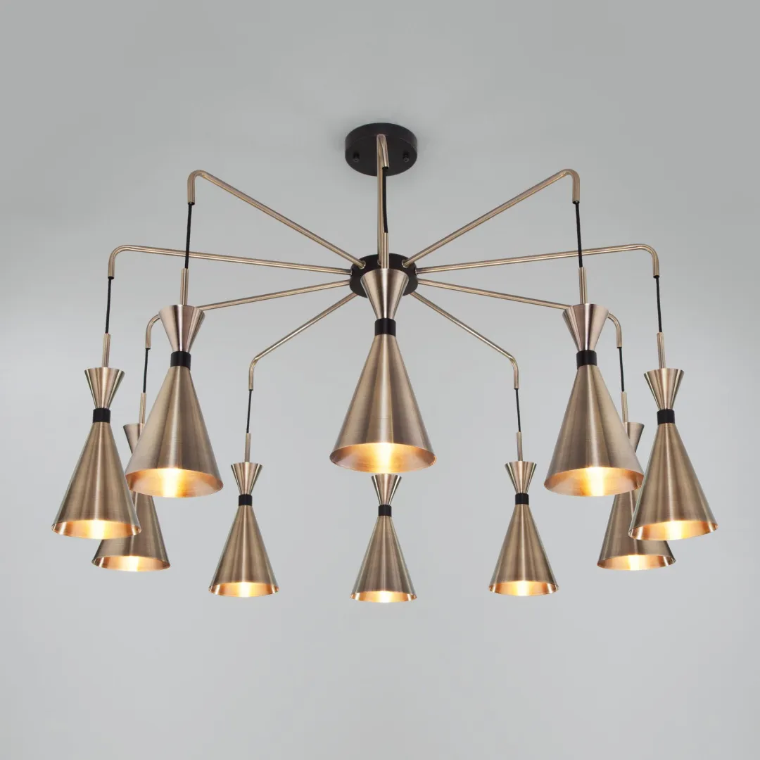 В десятирожковой люстре используются сменные лампы с цоколем Е14, рассчитанные на максимальную мощность 60 Вт. В производстве люстры использован высококачественный металл с надежным защитным покрытием.