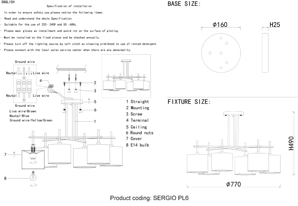 Потолочная люстра Crystal Lux SERGIO PL6 NICKEL