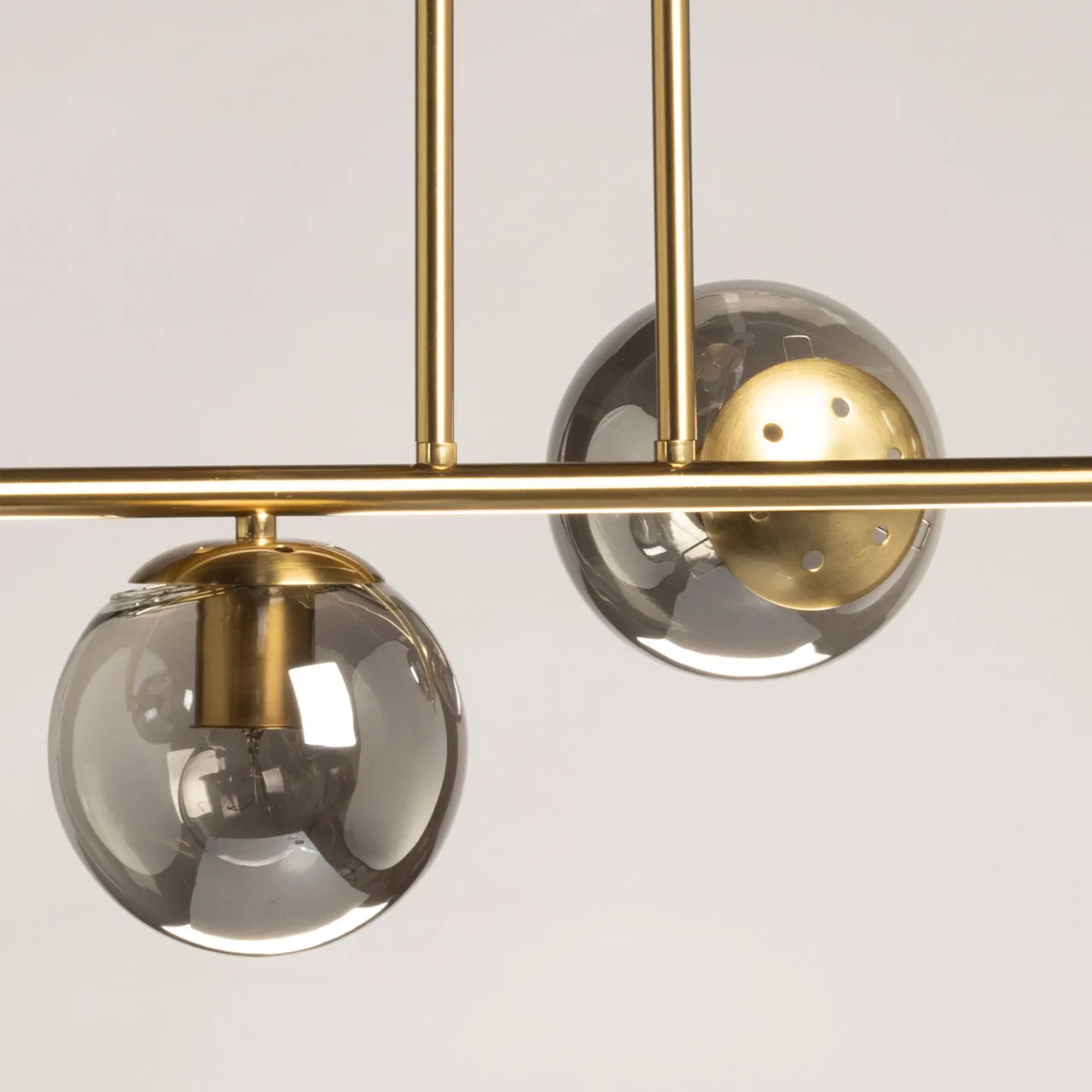 Металлическое основание гальванизировано в цвет меди. Заменяемые источники света скрыты за стеклянными плафонами, которые также гальванизированы медью, но уже в дымчатом оттенке.